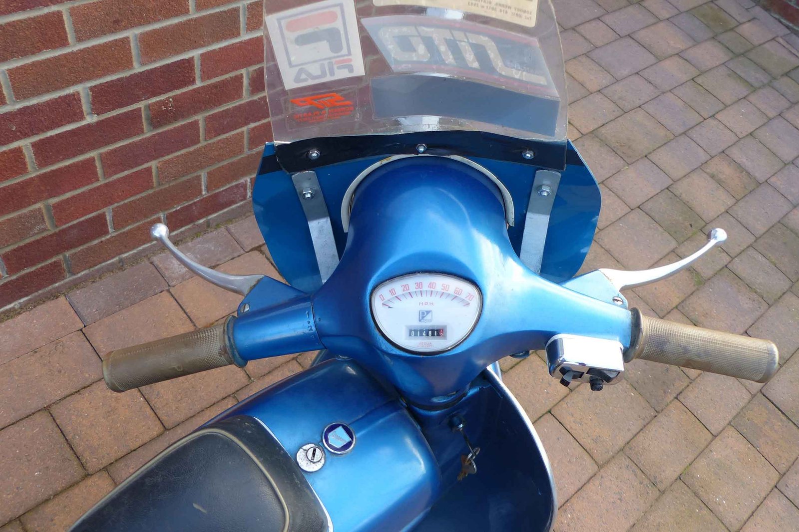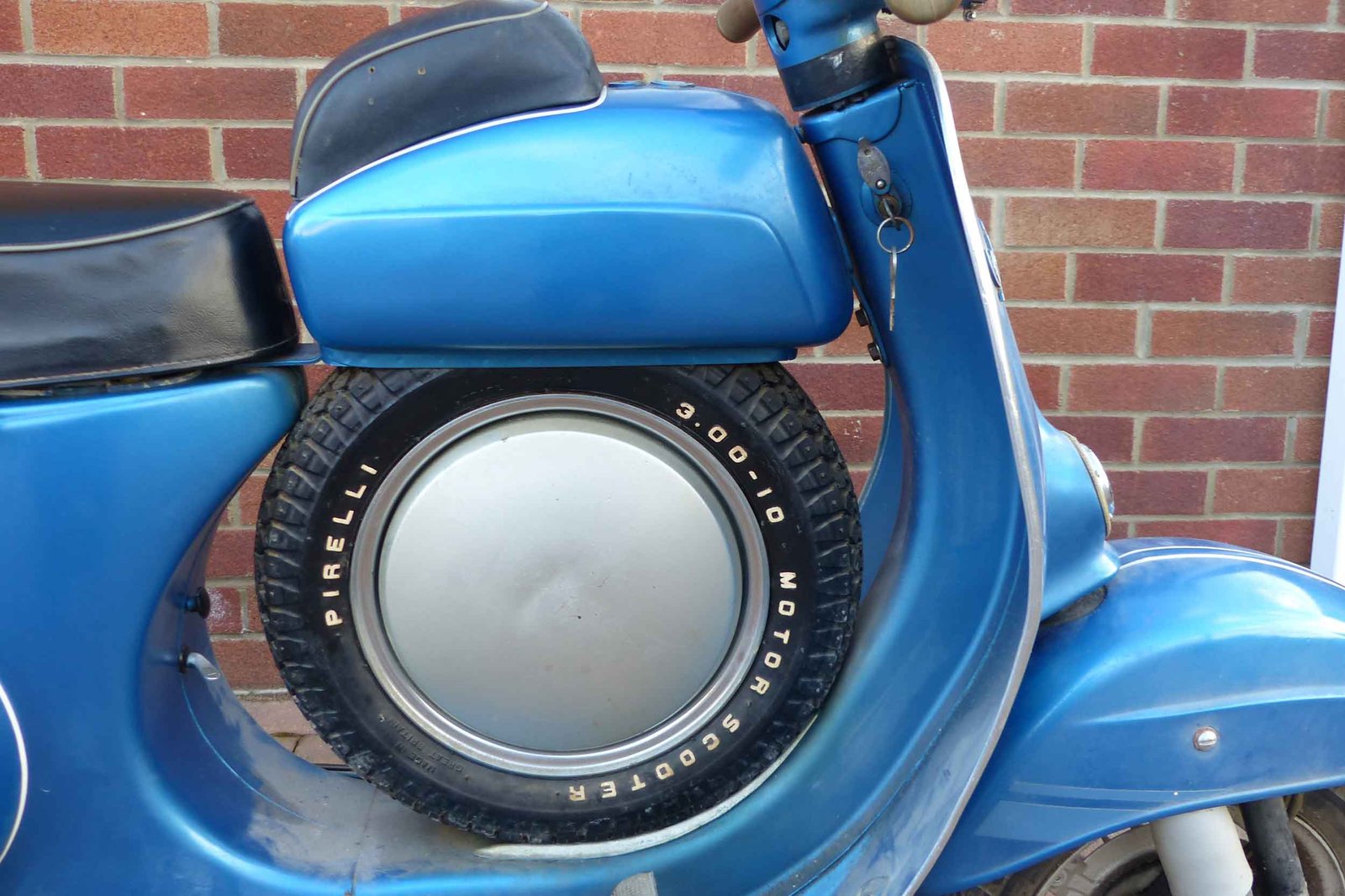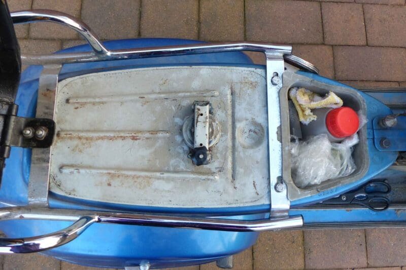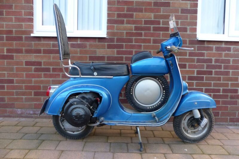 A number of modifications were made over the years, but in the spirit of Italian craftsmanship, they all have a story. The scooter was resprayed metallic blue in the early ‘80s, a chrome headlight trim was added, and a replacement backrest was installed for safety — presumably to stop the young vendor from launching himself off the back during particularly enthusiastic rides.