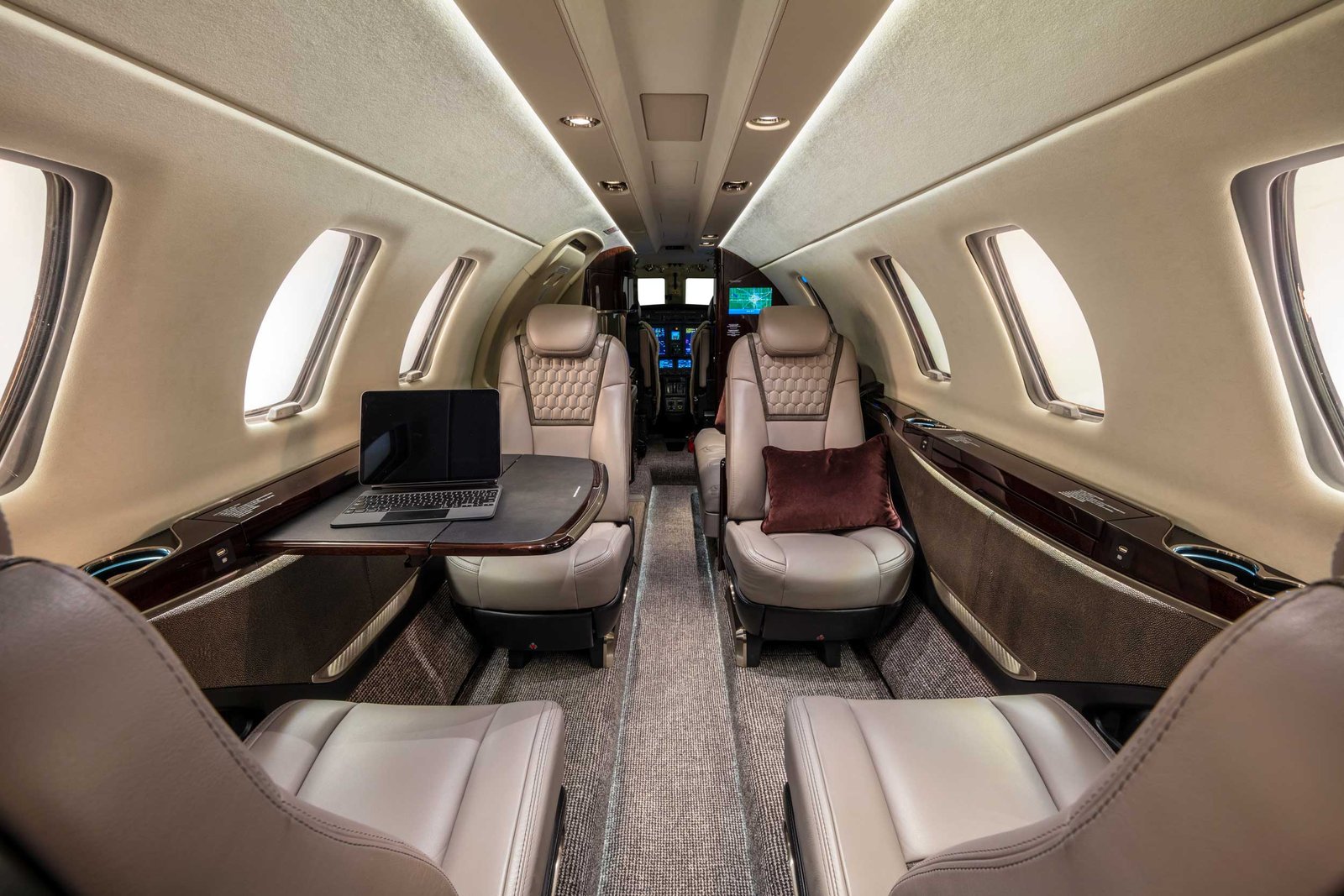 The single-pilot certified CJ4 Gen2 has seating for up to ten passengers and includes a notable 1,040-pound baggage capacity.