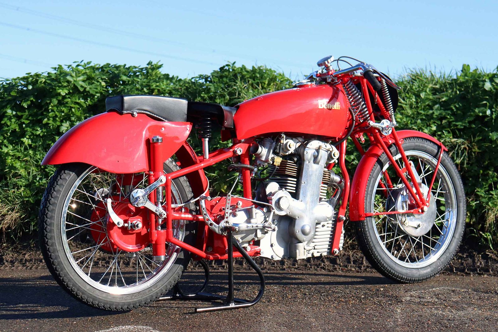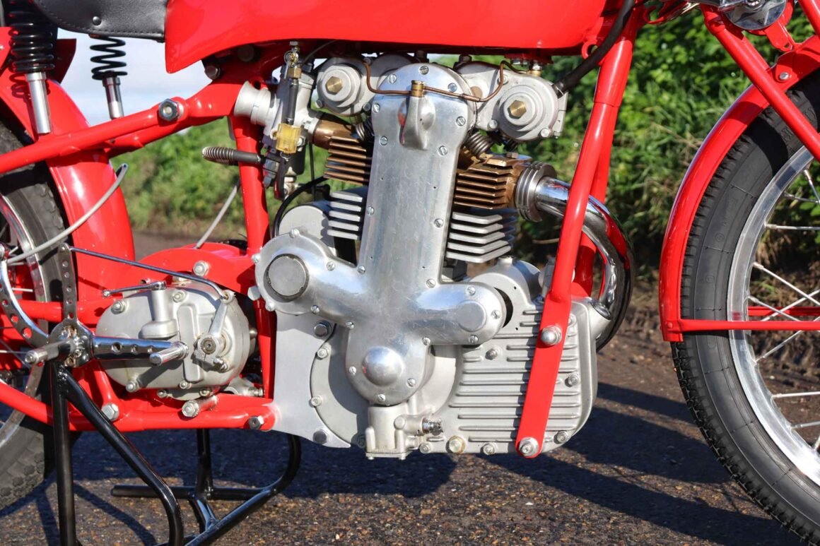 First seen in 1930 and enlarged to 250cc by 1934, the DOHC Benelli was no mere incremental upgrade. It was a statement: high revs, precise valve control, and performance that embarrassed larger machines. Period reports spoke of a flying kilometre at 113mph — territory normally reserved for the quickest 350s of the era.