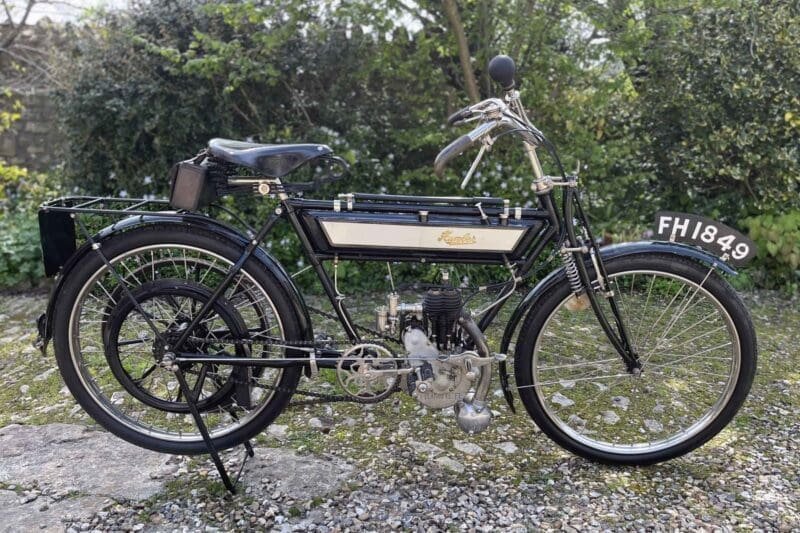 The auctioneer, George Beale of Charterhouse, said, “We have another great selection of 140 motorcycles dating from a 1912 Humber to a 2019 Kawasaki. From unreserved bikes to rides estimated at £50,000 there is something for all pockets.”