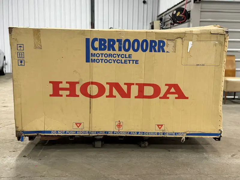 Now, here’s the bit that’ll make your jaw hit the floor. This isn’t just any Fireblade – it’s a ‘new/old stock’ Fireblade. Yes, this pristine machine was ex-dealer stock that somehow dodged the hands of eager buyers and ended up cocooned in its original crate for two decades. It’s like finding a brand-new VHS player in its box or a vintage bottle of wine that hasn’t been uncorked. Except this can do 0 to 60 faster than you can say, ‘Where’s my helmet?